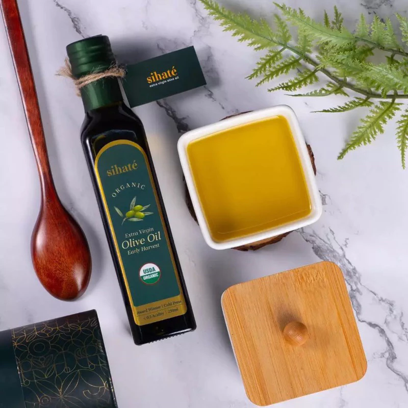 Sihate Extra Virgin Olive Oil (EVOO) — minyak zaitun early harvest cold-pressed yang kaya antioksidan, diluluskan KKM, dan membantu menurunkan kolesterol serta memberi tenaga semula jadi setiap hari.